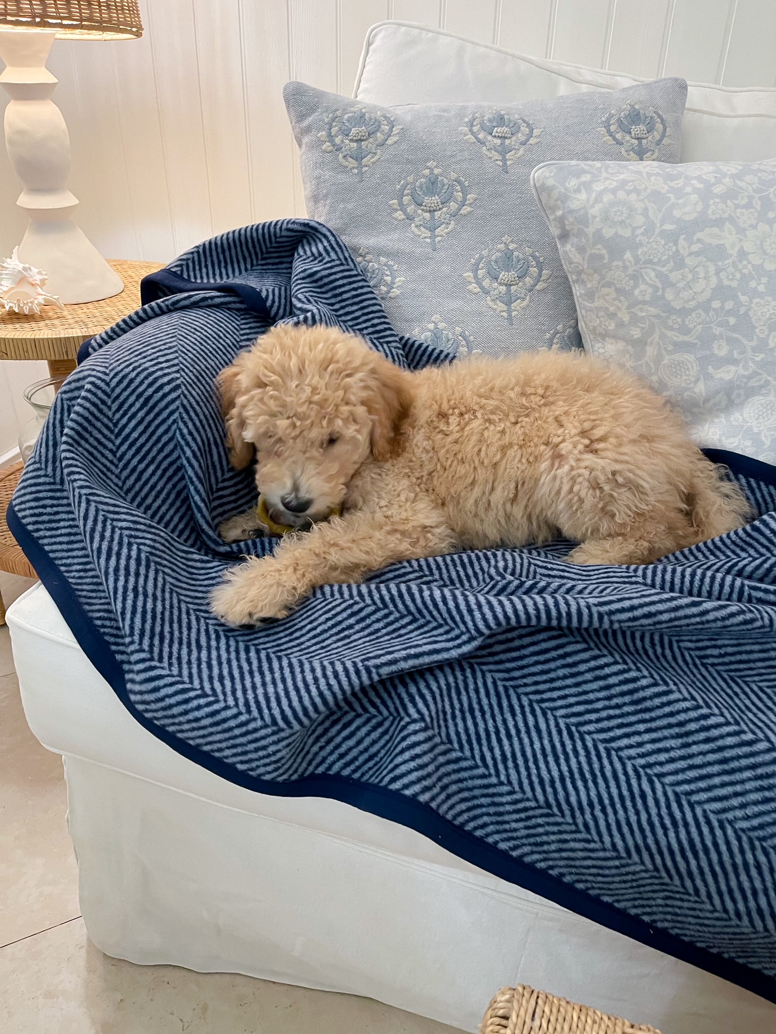 There’s no better blanket than ChappyWrap blankets and they’re available in the prettiest designs. I love this garden gate blanket and the harborview herringbone blanket Goldie is sitting on in the photo above. Shop the collection here, including a new lightweight blankets.