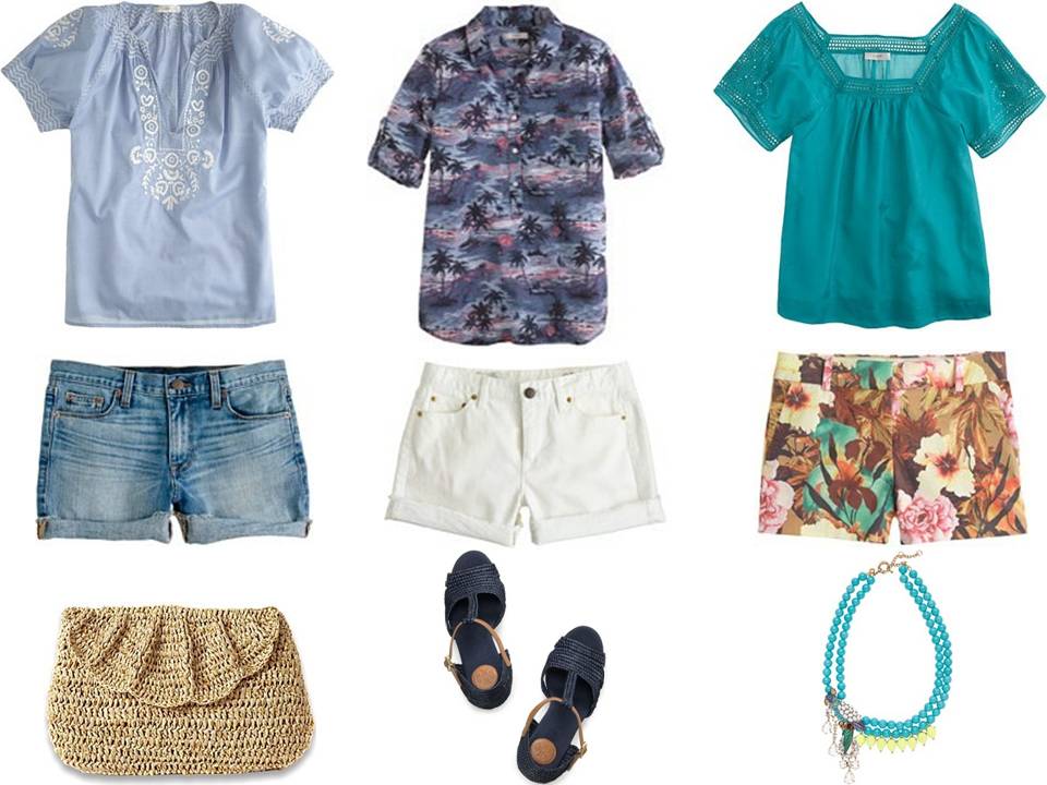 It’s always fun to pair a few unexpected pieces together for a chic (smart & stylish) vacation look. The most surprising thing here is the Hawaiian printed popover. I walked past it at least a dozen times in the store and decided to try it on only after I realized it was on sale. To my surprise…it instantly became a must have for me and I quickly ran to the register! I’m going to pop it over those cute white denim shorts. I confess that I went a little loco on the shorts this summer. I hope it’s all casual on this vacation I’m going on, because I bought almost every pair of shorts that J.Crew is selling this summer! Yikes! I figured that living in a hot climate should give me tons of opportunities to where them all, right? So…do I own all the shorts featured here? Yep. I’ve been living in the denim shorts with vintage cotton tees all week long and I’m looking forward to wearing those desert floral shorts with this gauze top. How about you? Do you have a collection of shorts too? Or, is it just me?