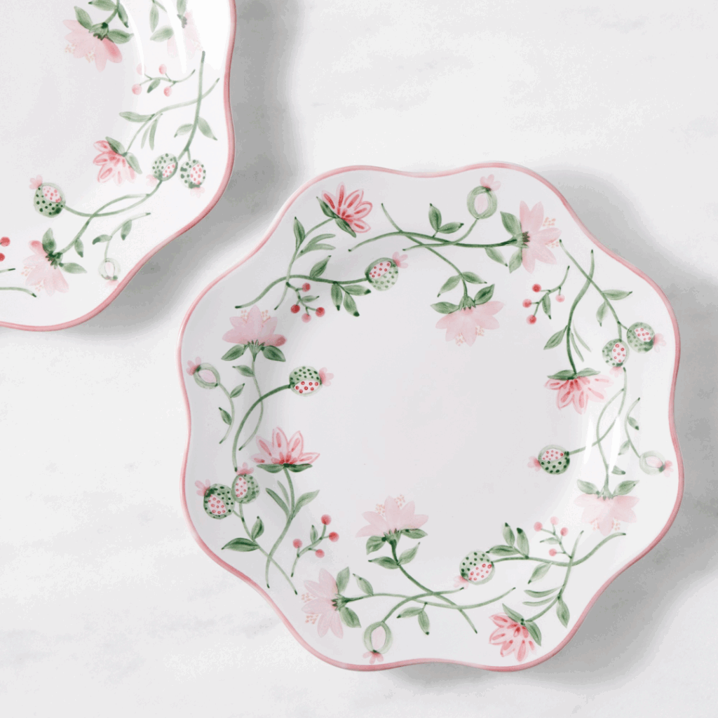 Pink Floral Wavy Salad Plates