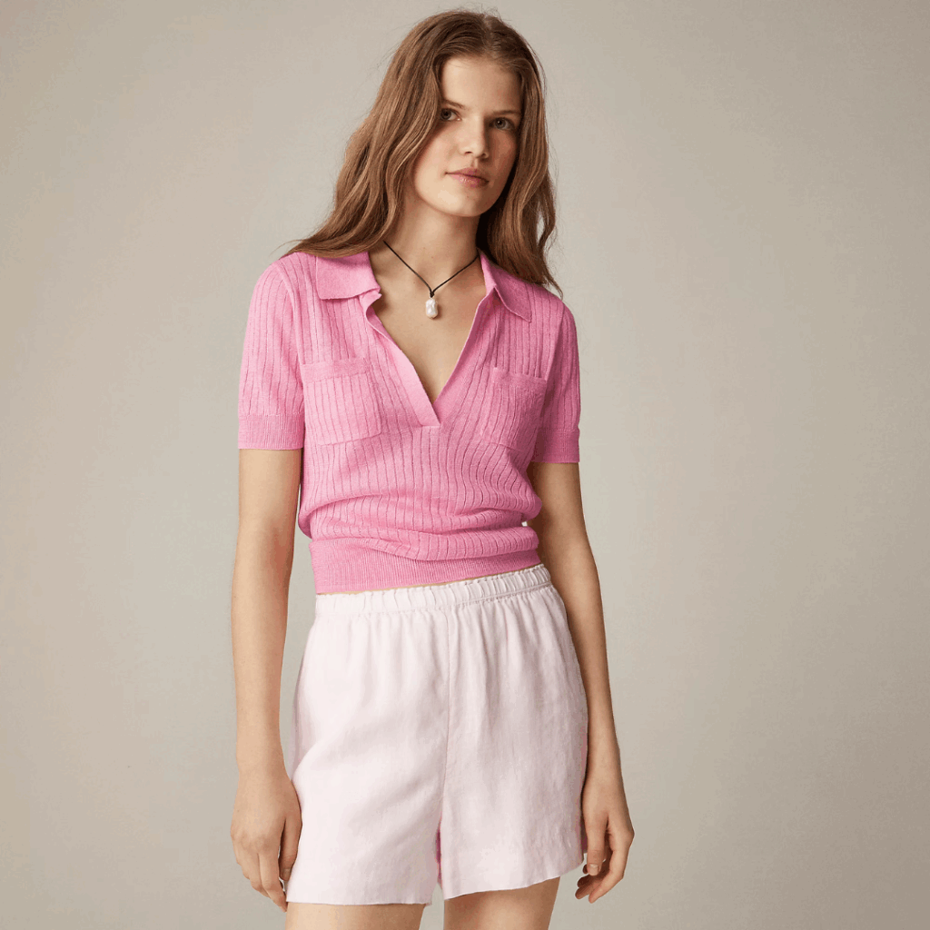 Obsessed with this pretty shade of pink in one of my favorite pointelle tees! It’s soft, flattering, and available in more lovely colors too.