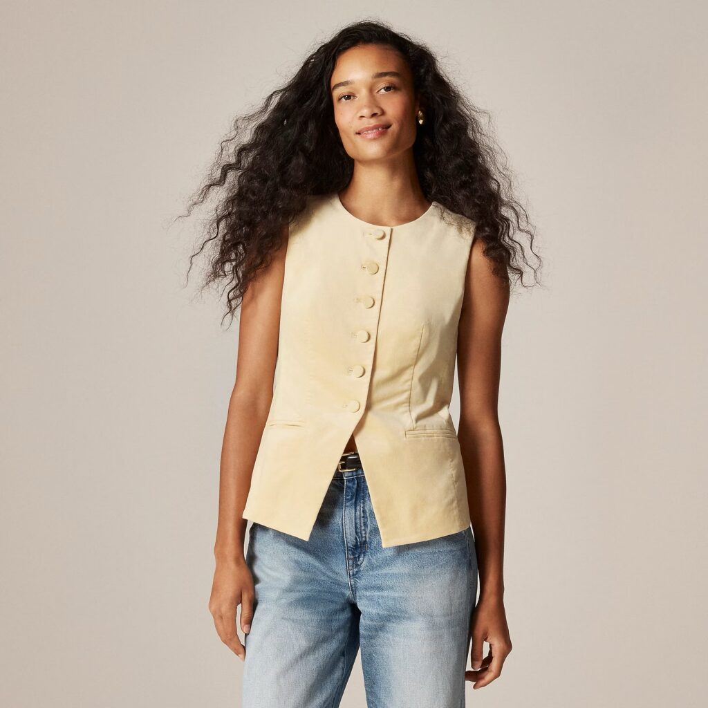 If you havenโt tried a vest yet, I highly recommend this one. I have it in two other colors from summer and wore them nonstop, so grabbing the velvet version was an easy yes. And the best part? Itโs on sale right now.
