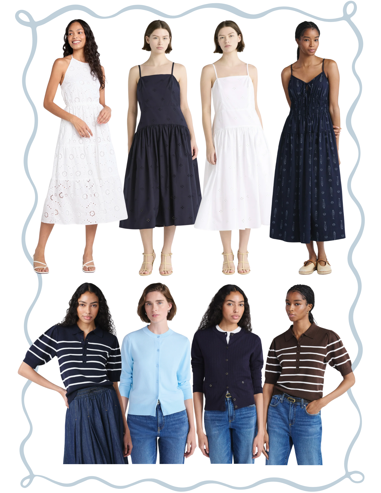 I just updated my Walmart storefront with so many pretty blue and white pieces that give that effortless coastal look we all love. From eyelet dresses to striped knits, these finds feel timeless, breezy, and perfect for transitioning into fall while keeping that fresh seaside charm.