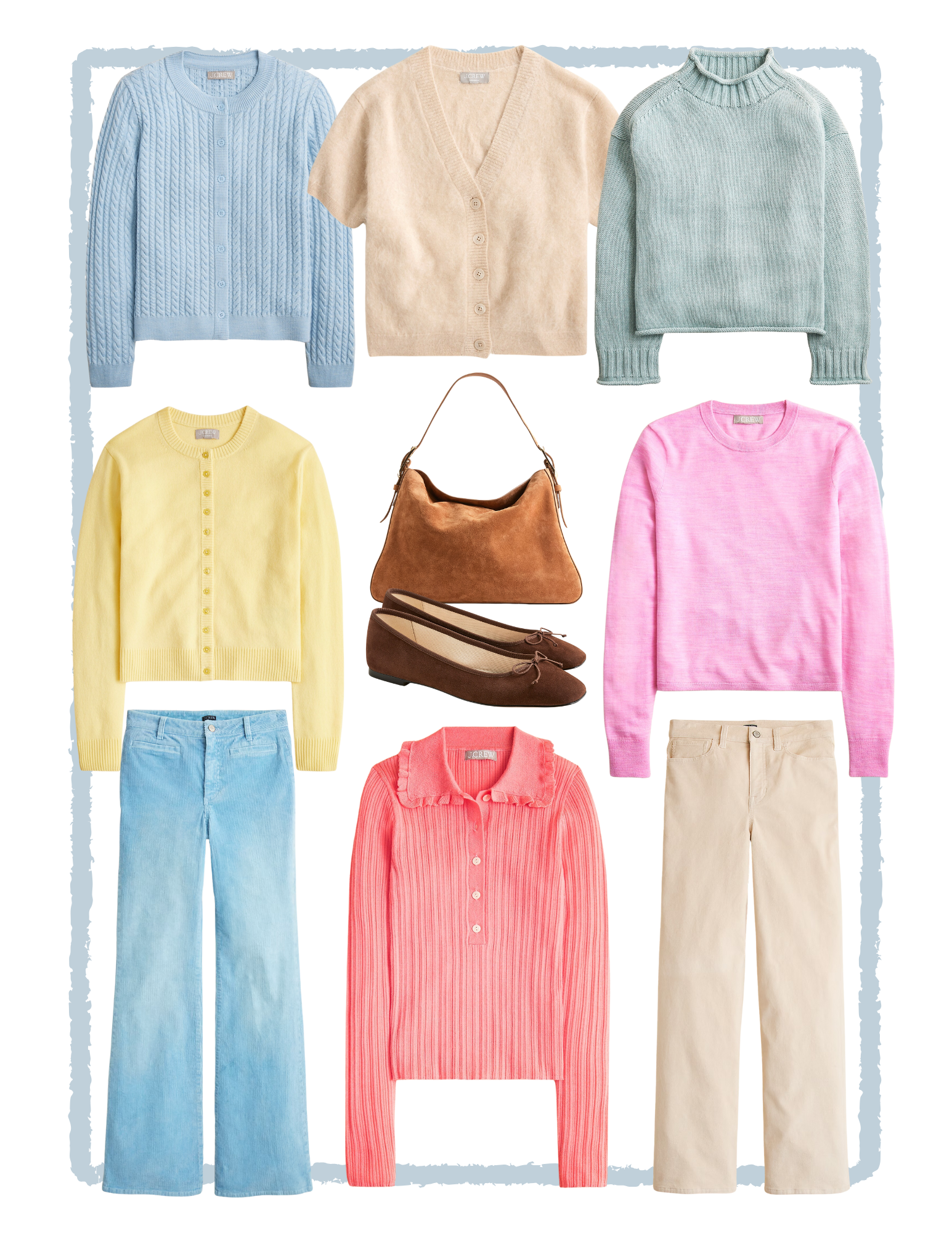 Think buttery-soft knits in sky blue, sunshine yellow, and blush pink, a cropped cardigan that feels as timeless as it is versatile, and the sweetest collared sweater in a pop of coral that’s just begging to be layered under a trench. There’s also fresh blue corduroy, the perfect neutral pants, and ballet flats that strike that balance between polished and playful.