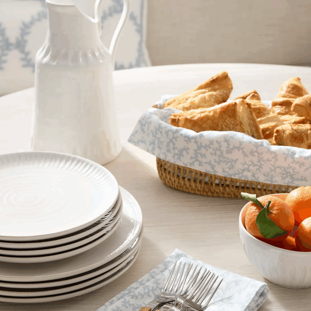 Perfect for the kitchen counter or brunch table. I love lining mine with a linen napkin and filling it with croissants or fruit. It adds that casual, collected charm that feels straight out of a Nancy Meyers scene.