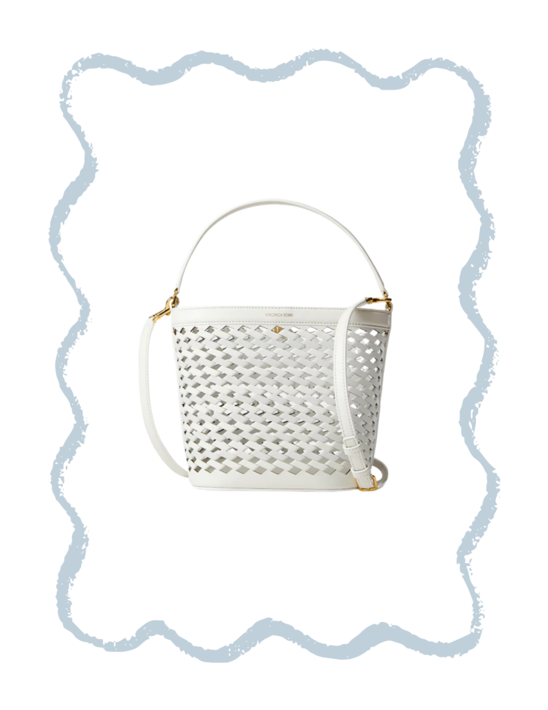 We sold out this perforated bag on the Veronica Beard website, but I found some here.