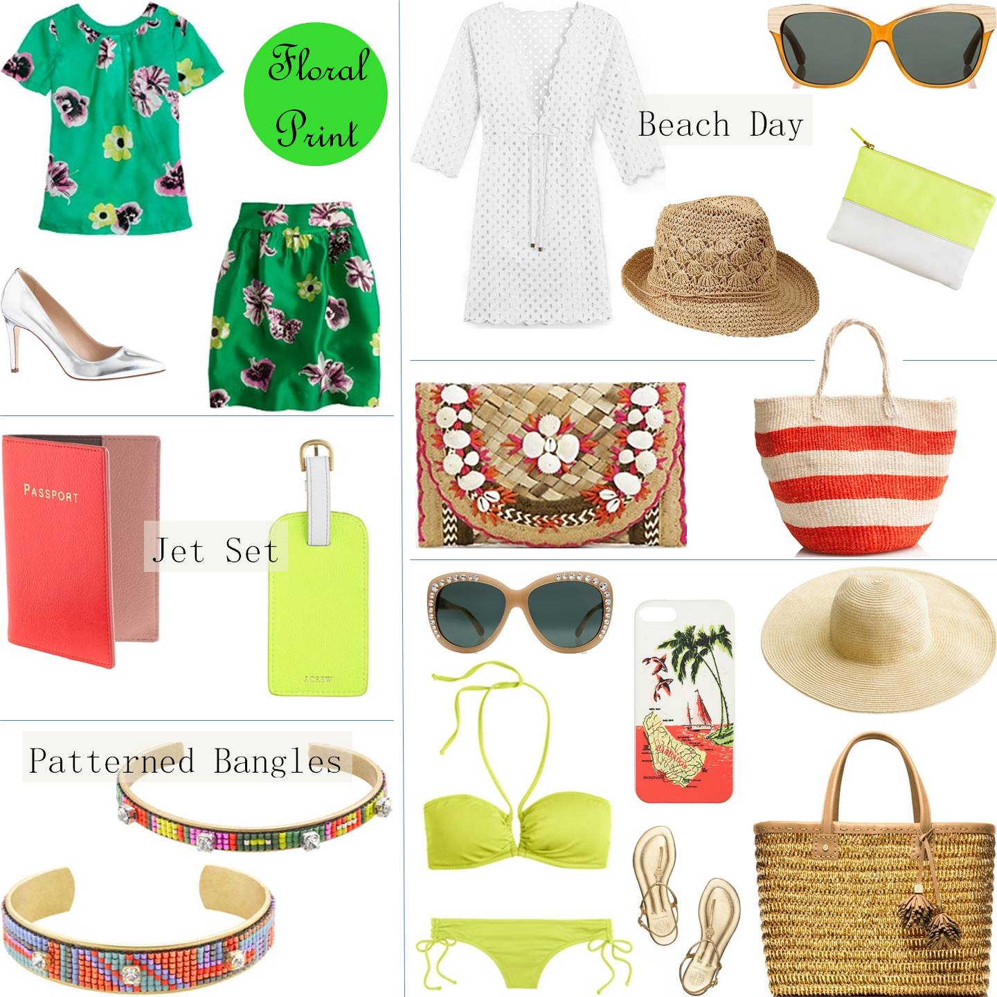 I think this is one of my favorite fashion boards that I’ve ever created! Love the new punk floral pattern from J.CREW, neon bikini and timeless shell clutch. All chic things to make a beachy vacation feel stylish and fun.