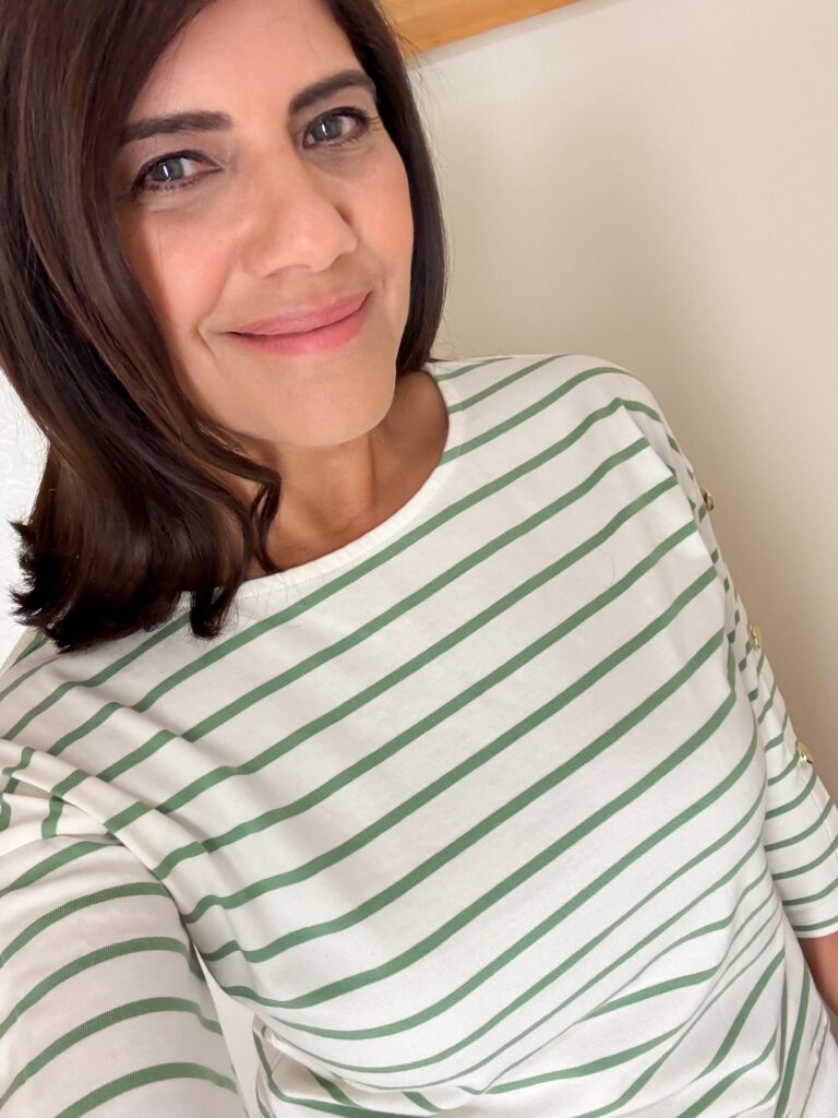 This round-up includes lots of beautiful striped pieces (you know I can never resist a good stripe!) and textured tops in the prettiest shades of blue—plus one lovely green that instantly reminded me of summer mornings by the sea. They’re the kind of tops that make getting dressed feel effortless, whether you’re heading to a meeting, brunch, or just enjoying a slow Saturday.